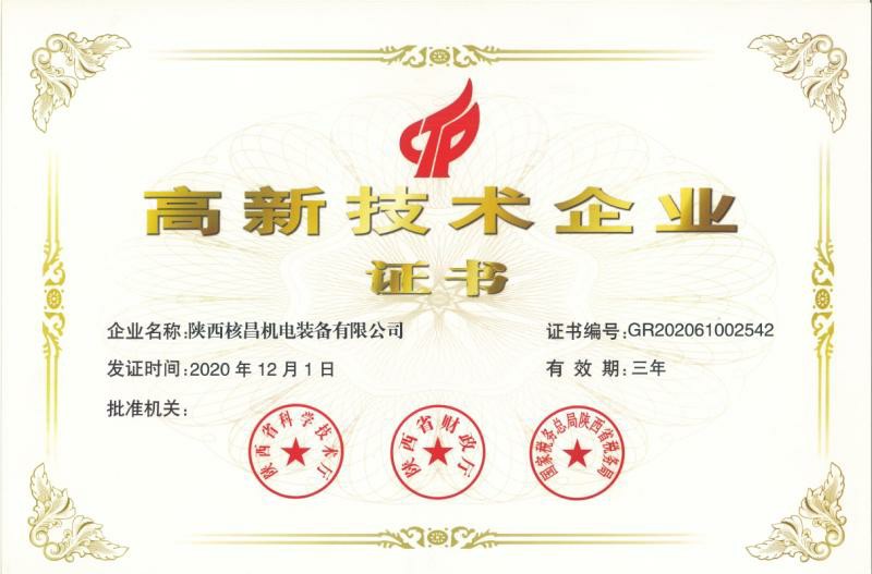 近日,根據(jù)國家《高新技術(shù)企業(yè)認定管理辦法》和《高新技術(shù)企業(yè)認定管理工作指引》的相關(guān)規(guī)定,通過對企業(yè)知識產(chǎn)權(quán)、科技成果轉(zhuǎn)化能力、企業(yè)經(jīng)營成長性指標(biāo)等項目的嚴(yán)格評審,陜西核昌...