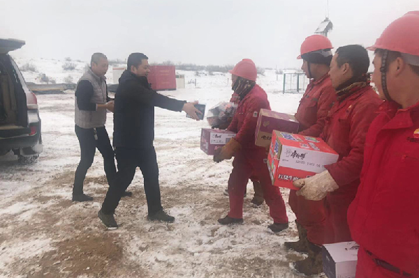 首先,副總經(jīng)理李偉帶領(lǐng)檢查組一行向惡劣環(huán)境下仍堅(jiān)持在野外作業(yè)的全體員工表示致敬和親切慰問(wèn),并為大家送上了慰問(wèn)品,細(xì)致詢問(wèn)工作人員的生活及身體狀況,提醒駐場(chǎng)工作人員要做好防寒保暖、注意安全、嚴(yán)防安全事故的發(fā)生。