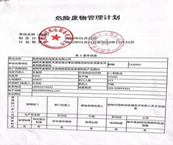 我公司屬機電一體化、機械加工等產(chǎn)業(yè)的生產(chǎn)及經(jīng)營活動, 現(xiàn)階段主要的危險廢物包括:油漆桶、廢機油、乳化液、噴漆、噴砂。油漆桶、廢機油、乳化液等危險廢物處置由陜西明瑞資源再生有限公司承接轉(zhuǎn)運及處理危廢;噴漆、噴砂房等由公司投入大量資金進行升級改造,在經(jīng)營活動中加強職工環(huán)保培訓(xùn),不斷提升職工環(huán)保意識。經(jīng)陜西格林秦灃環(huán)保科技有限公司監(jiān)測,所排廢氣均達到國家標準。為改善環(huán)境、大氣質(zhì)量作出積極的貢獻。